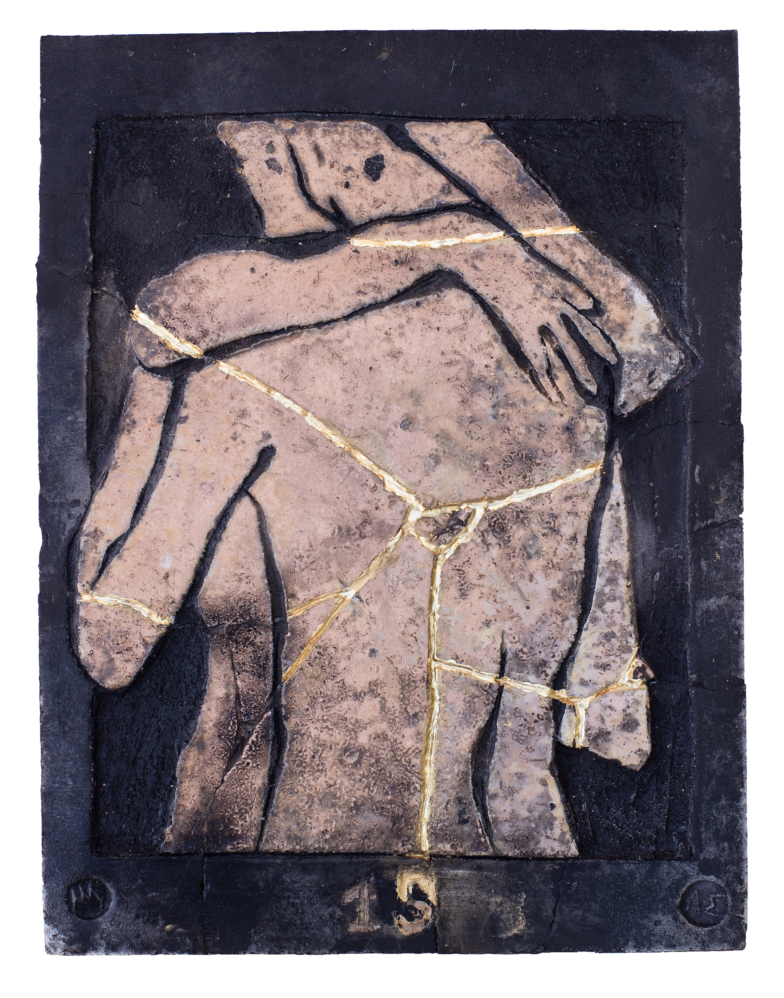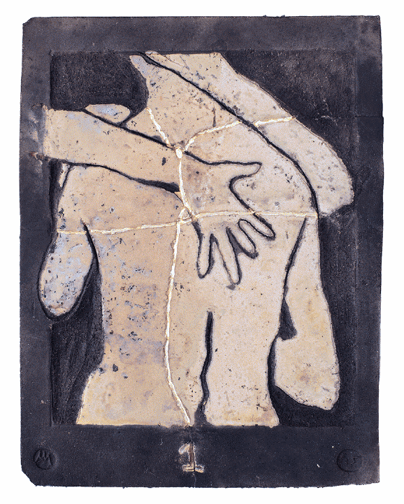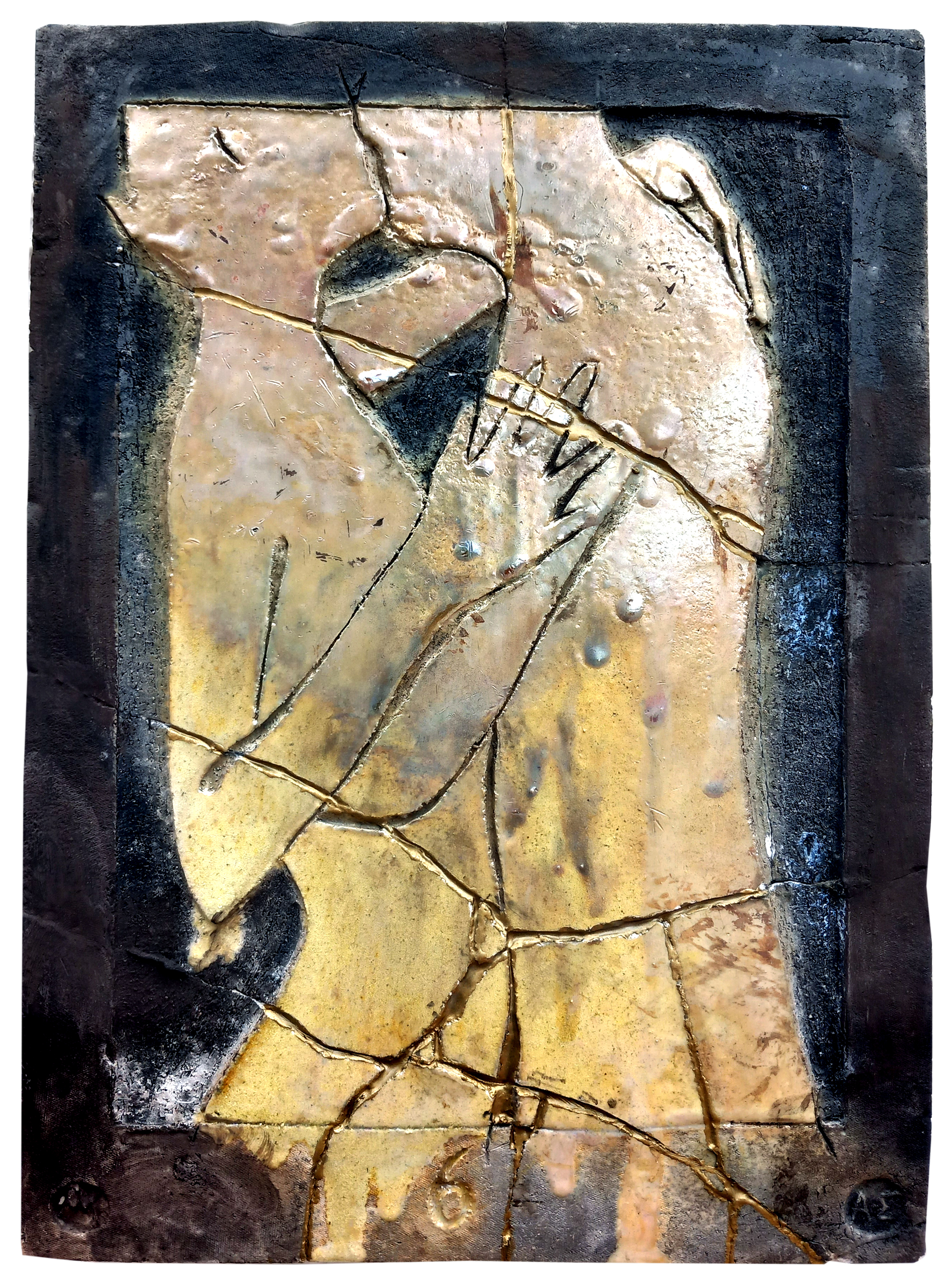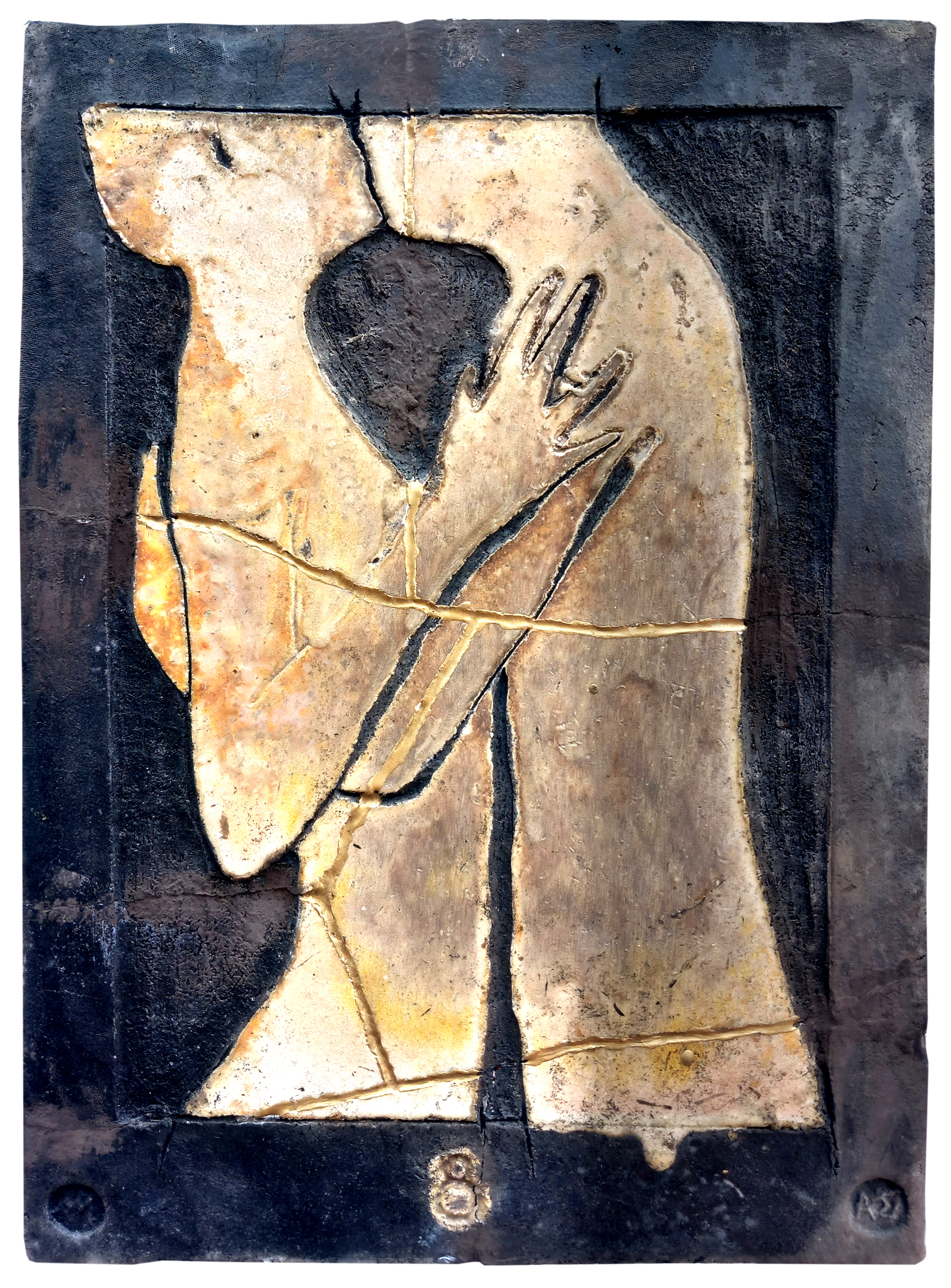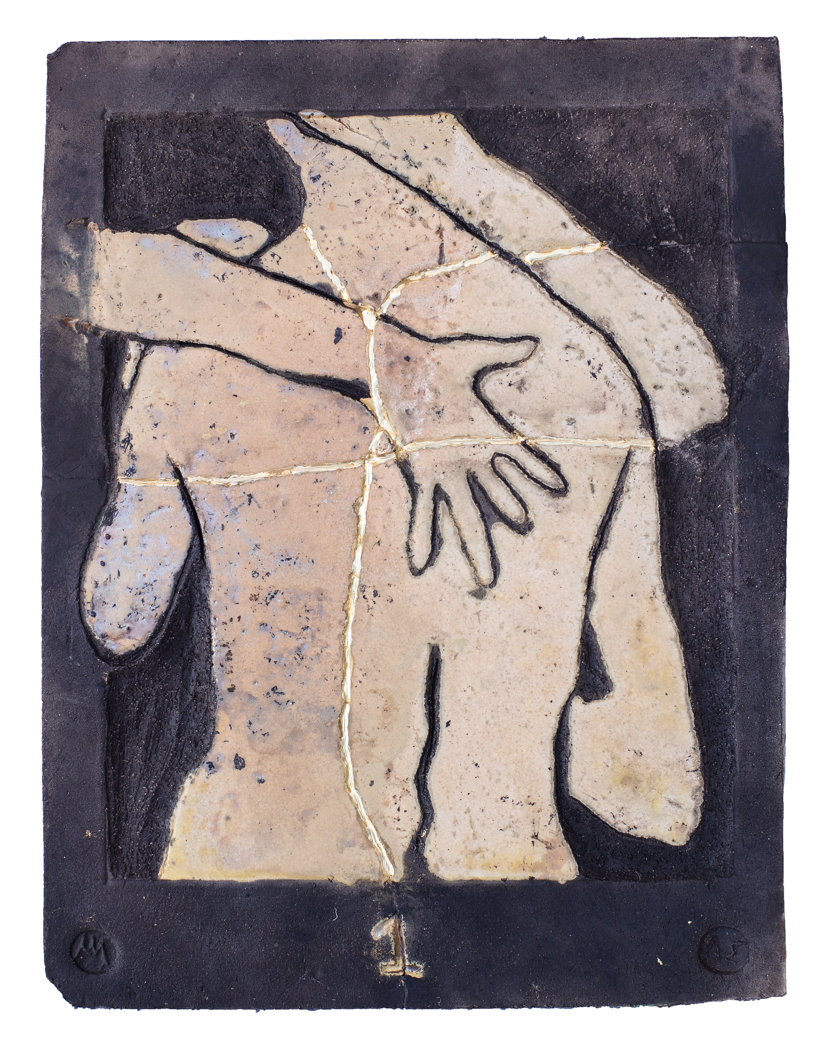 glazed naked Raku ceramic tile with Kintsugi Hug #2 31 x 39 x 3 cm, 2 kg |