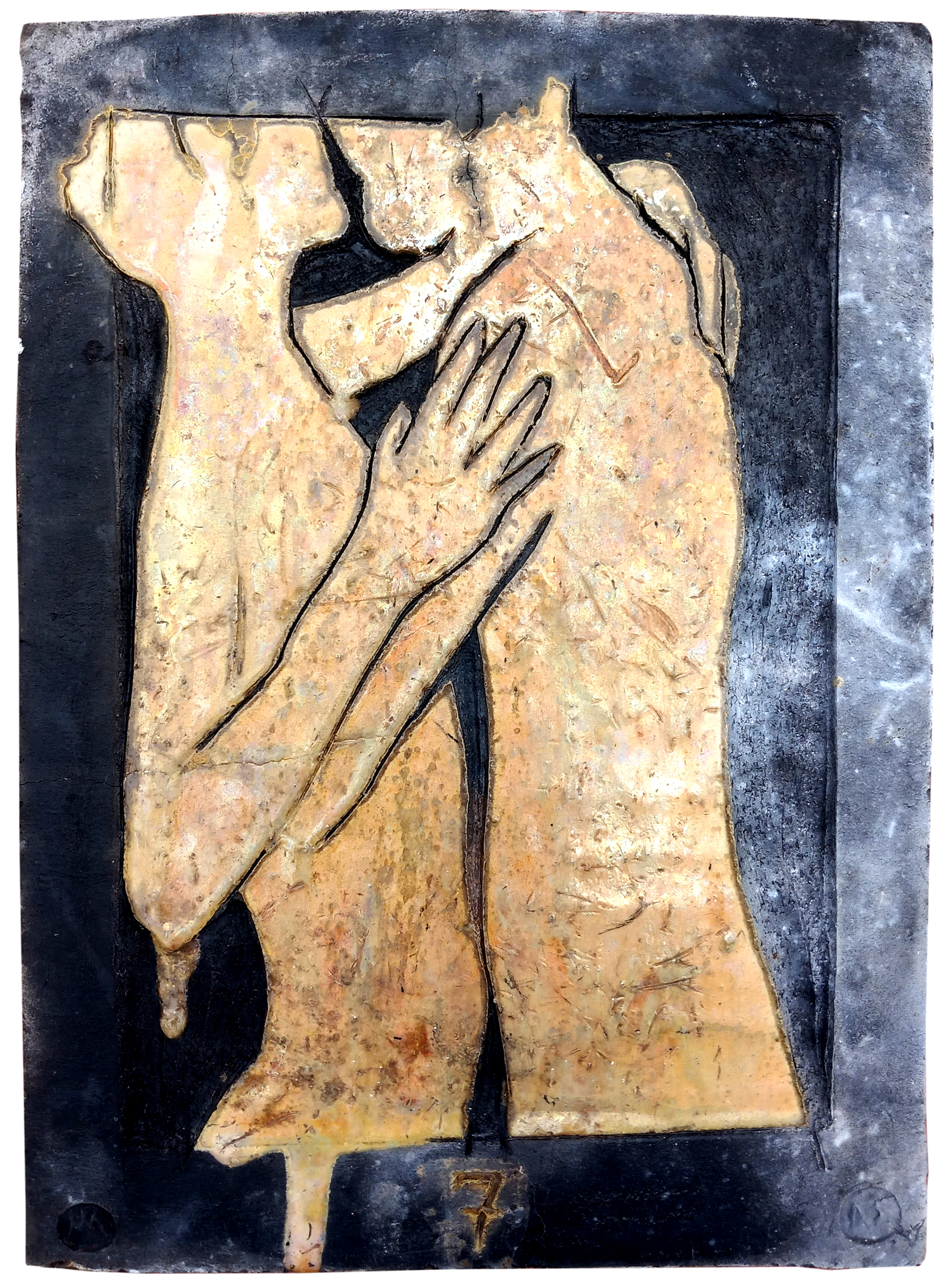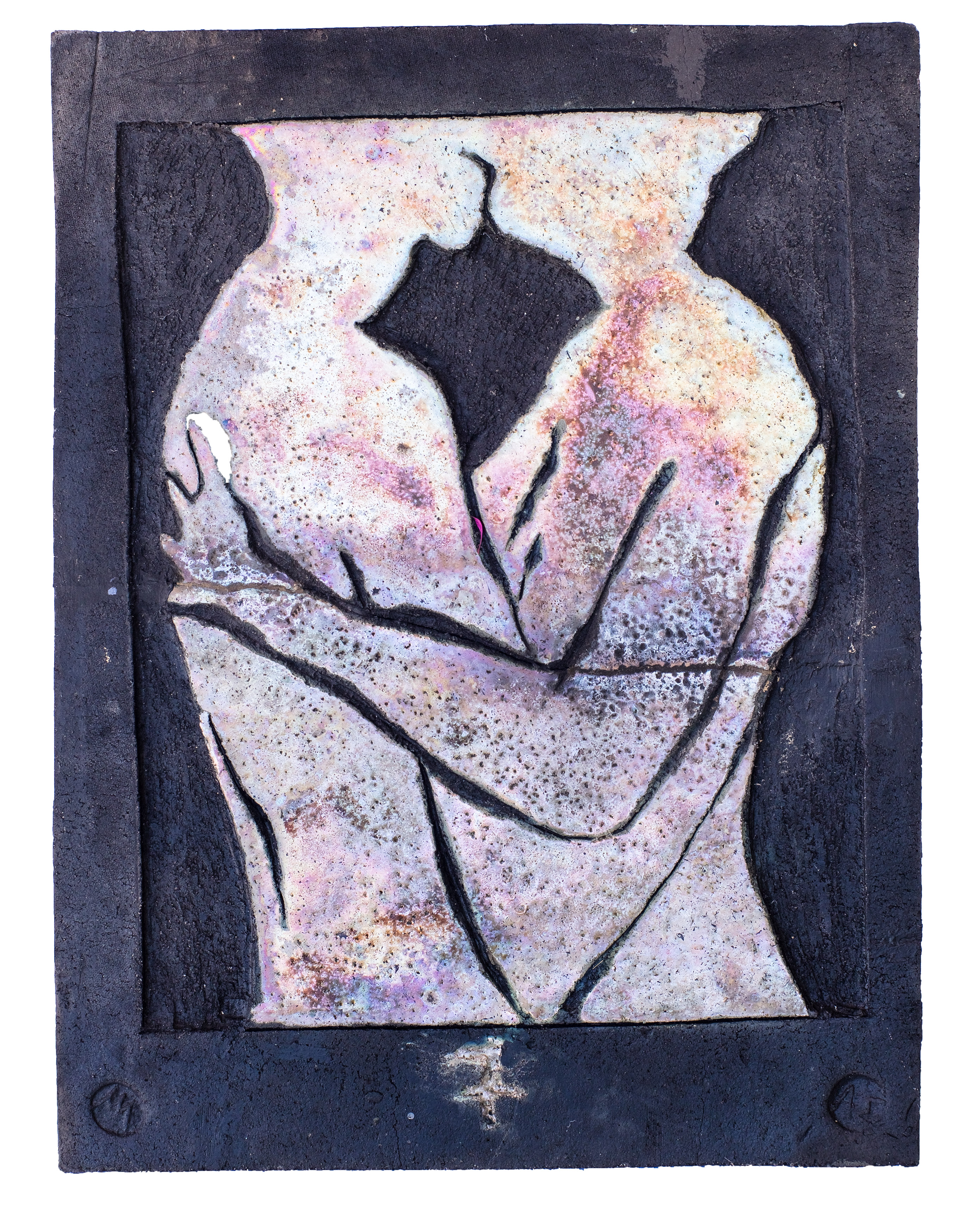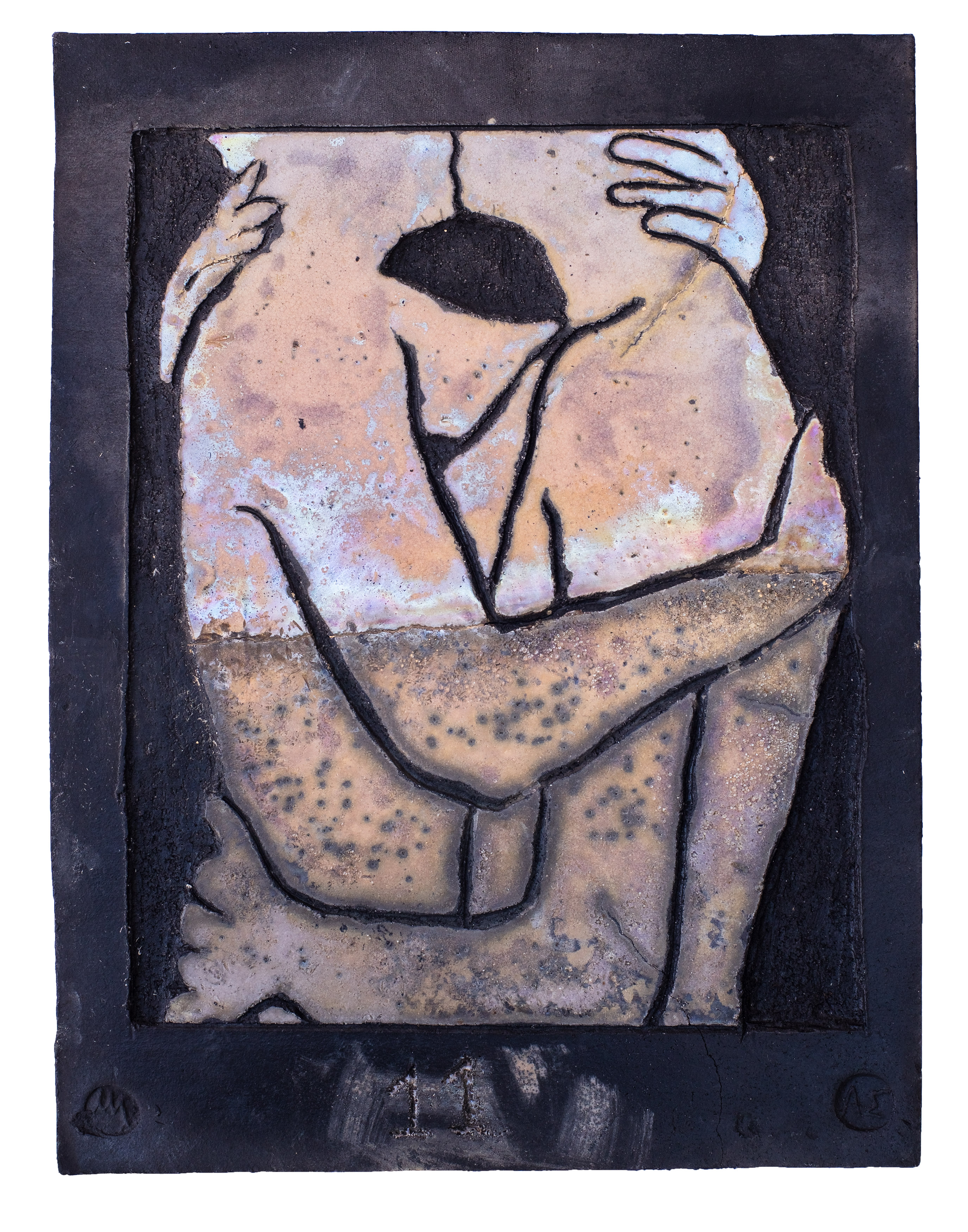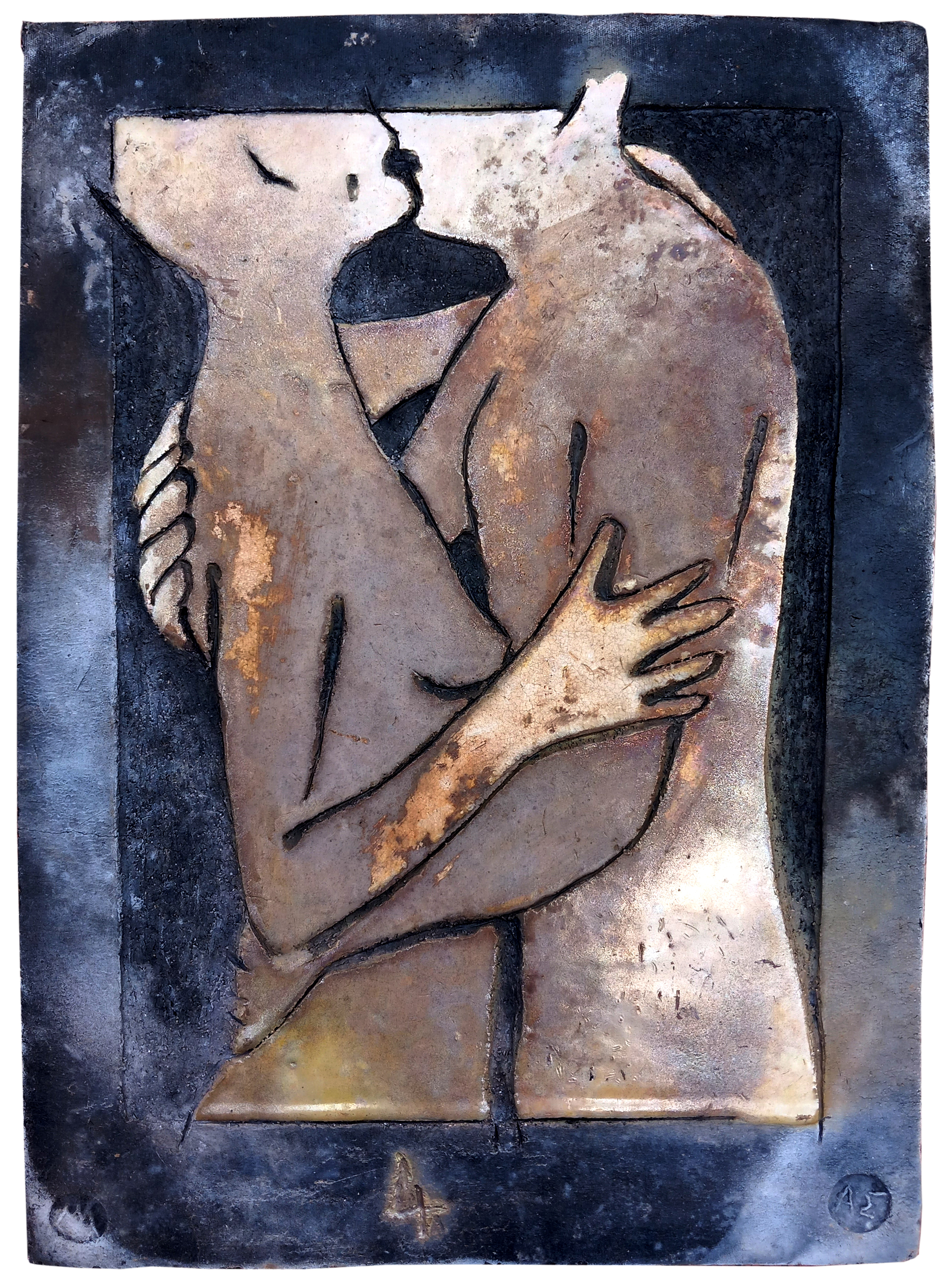 Raku ceramic tile Hug #1 31 x 39 x 3 cm, 2 kg |
