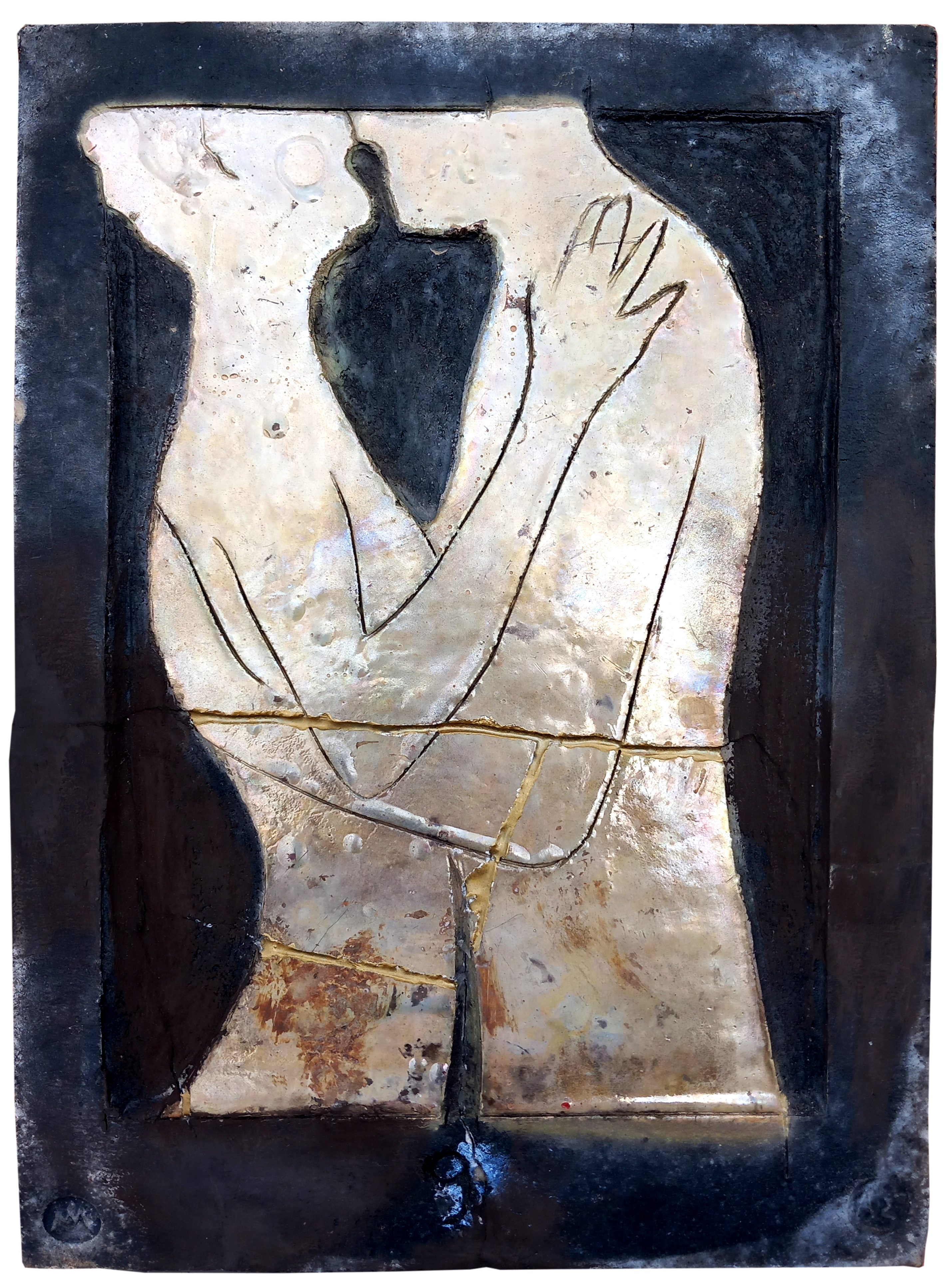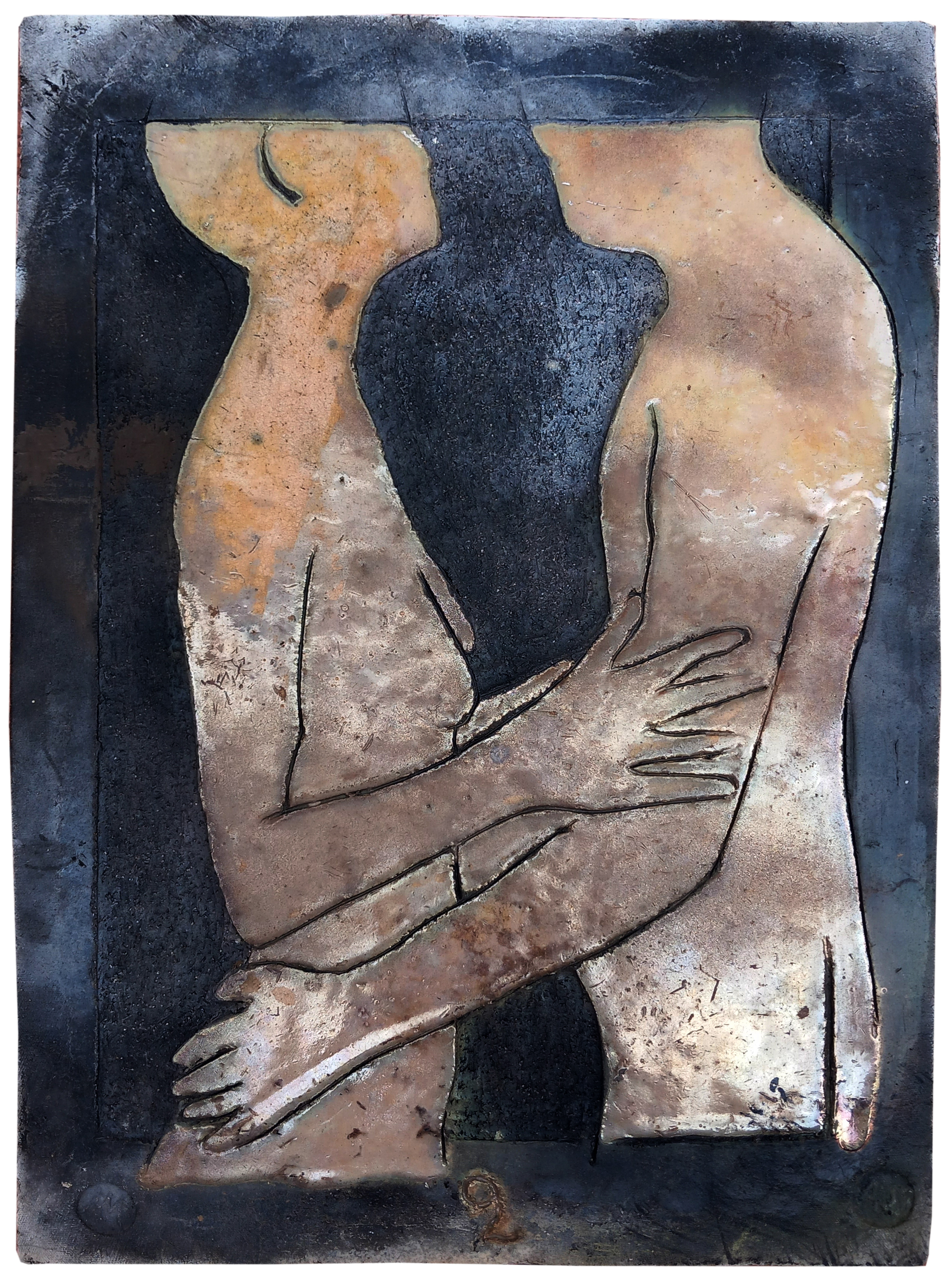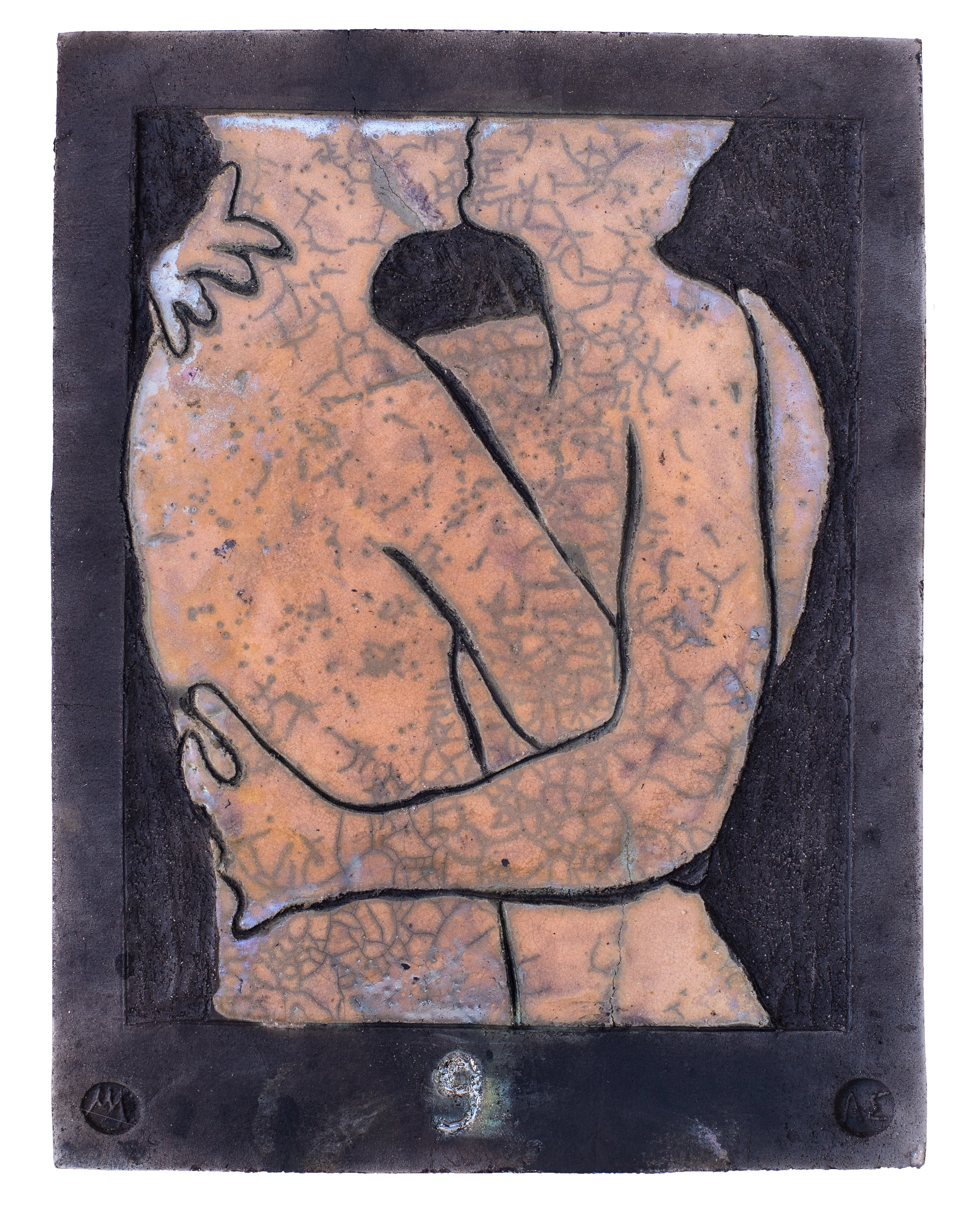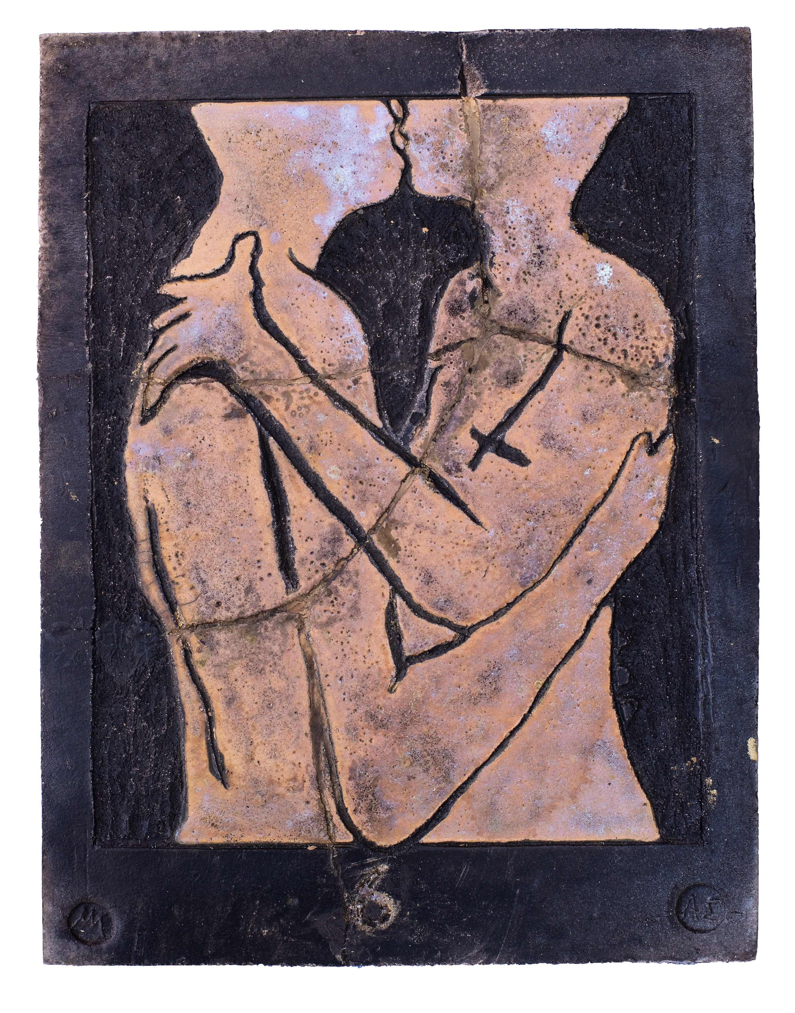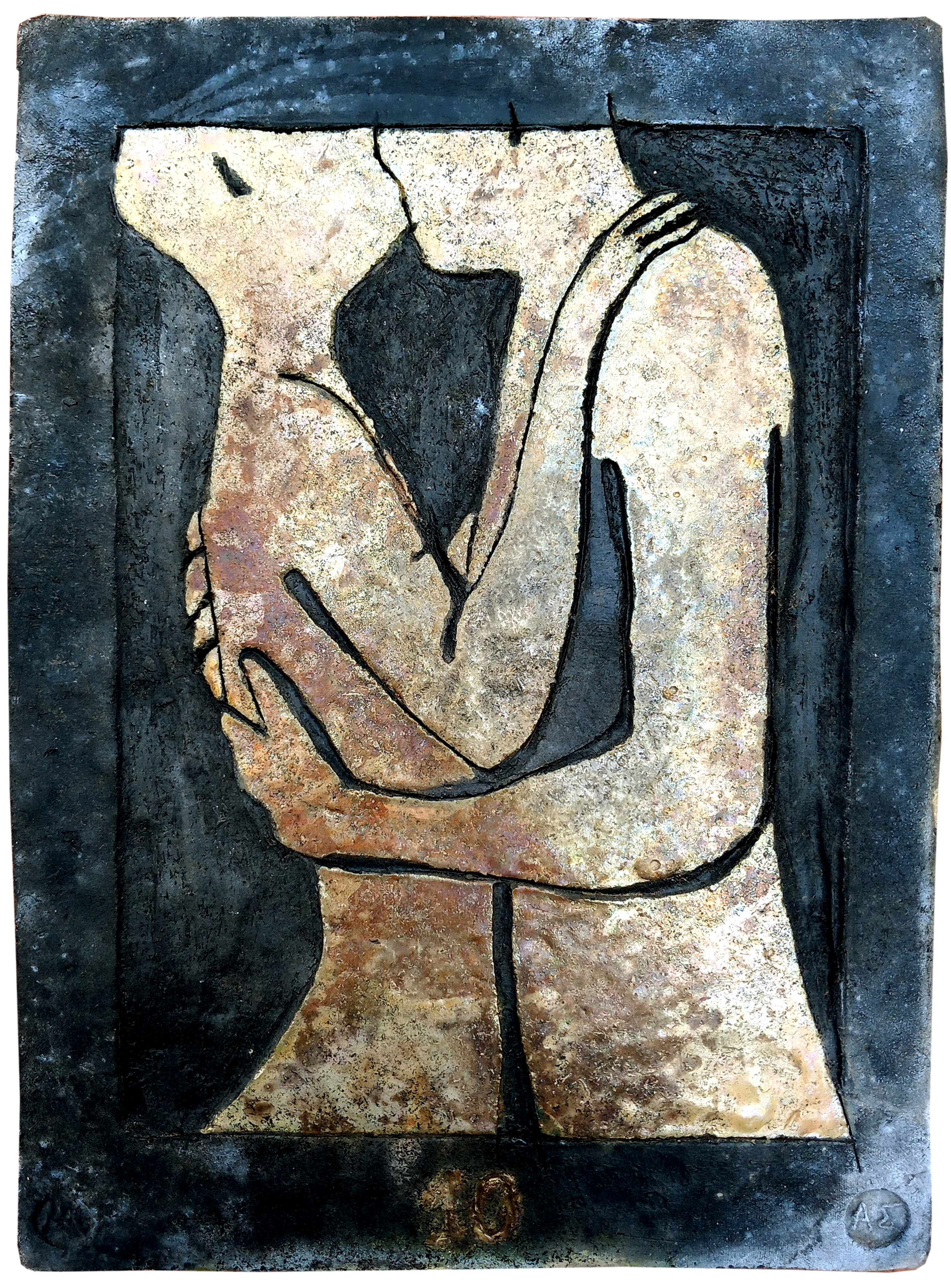 Raku ceramic tile Hug #1 31 x 39 x 3 cm, 2 kg |