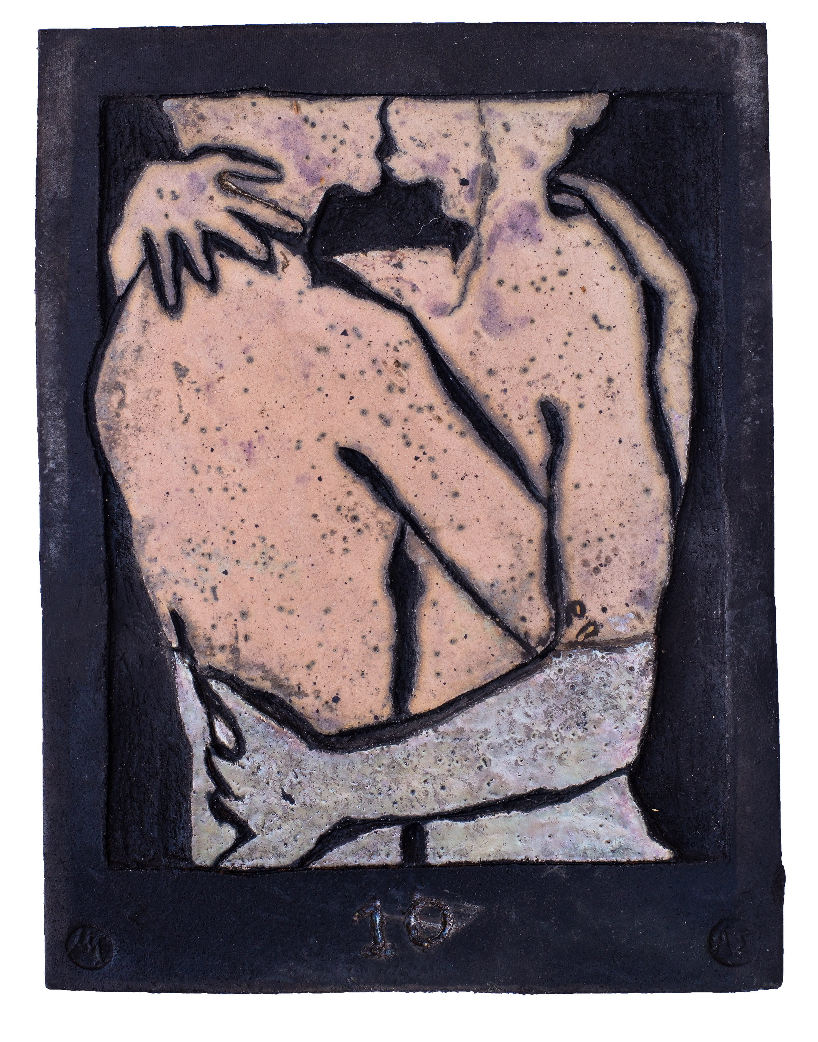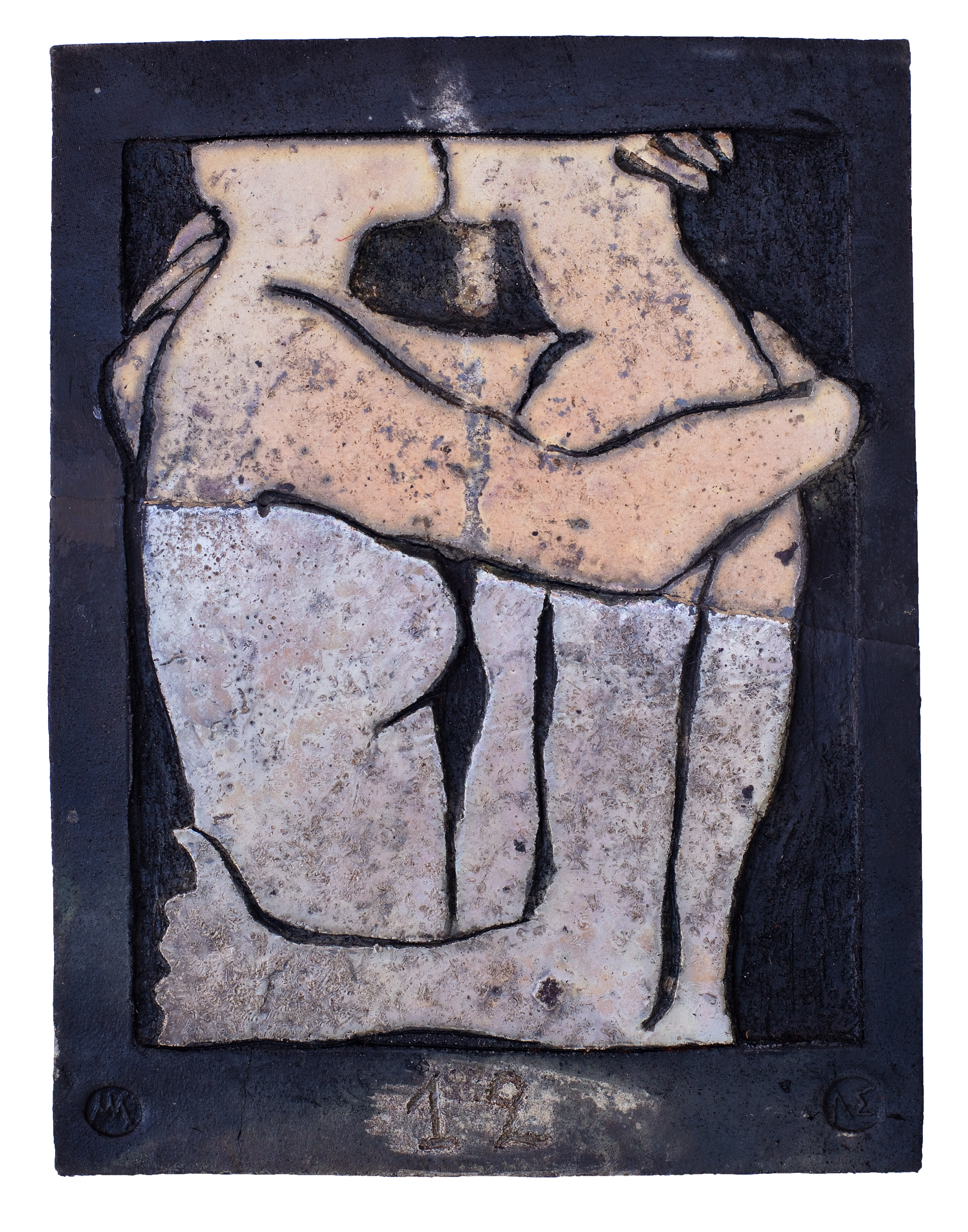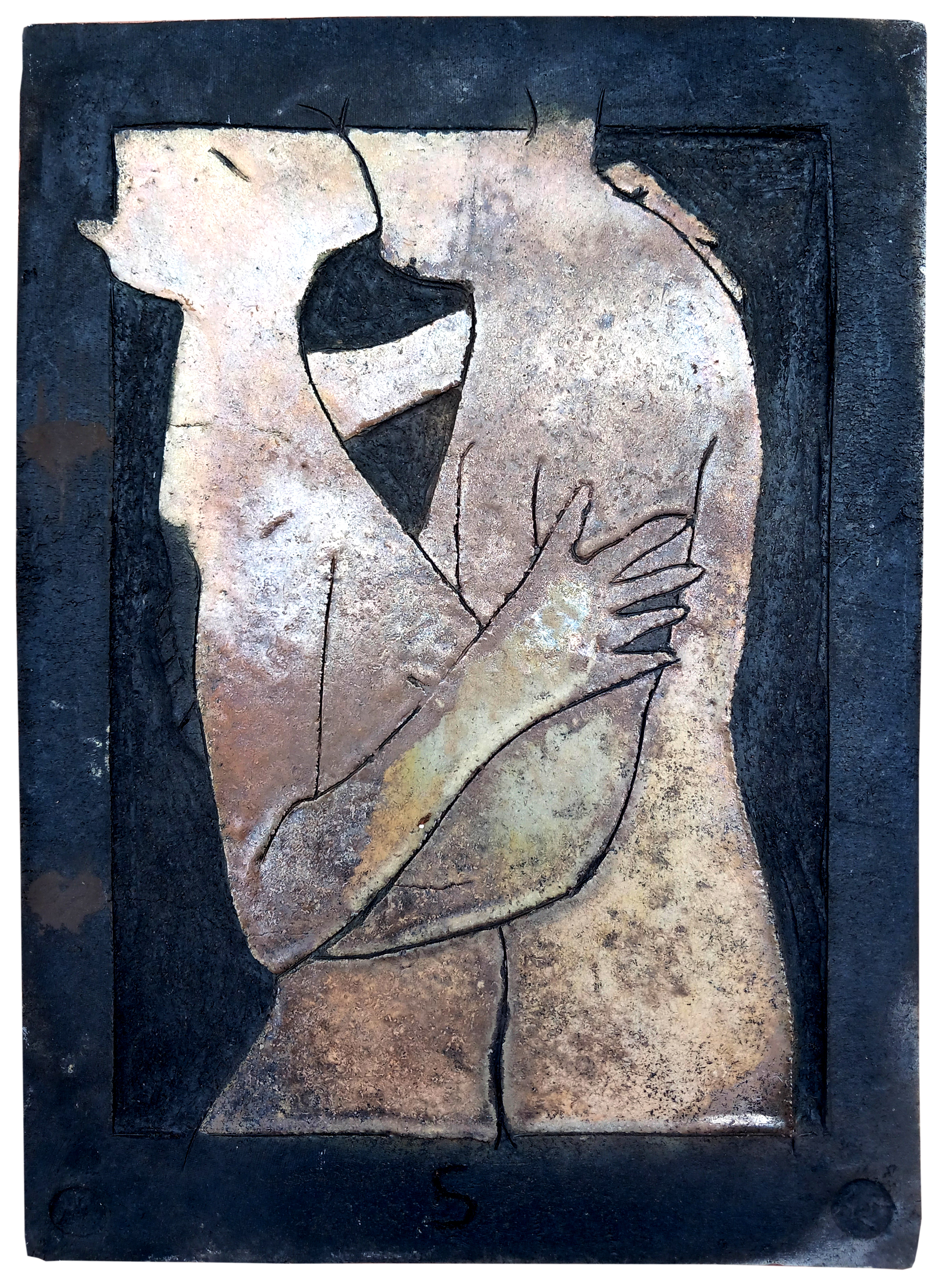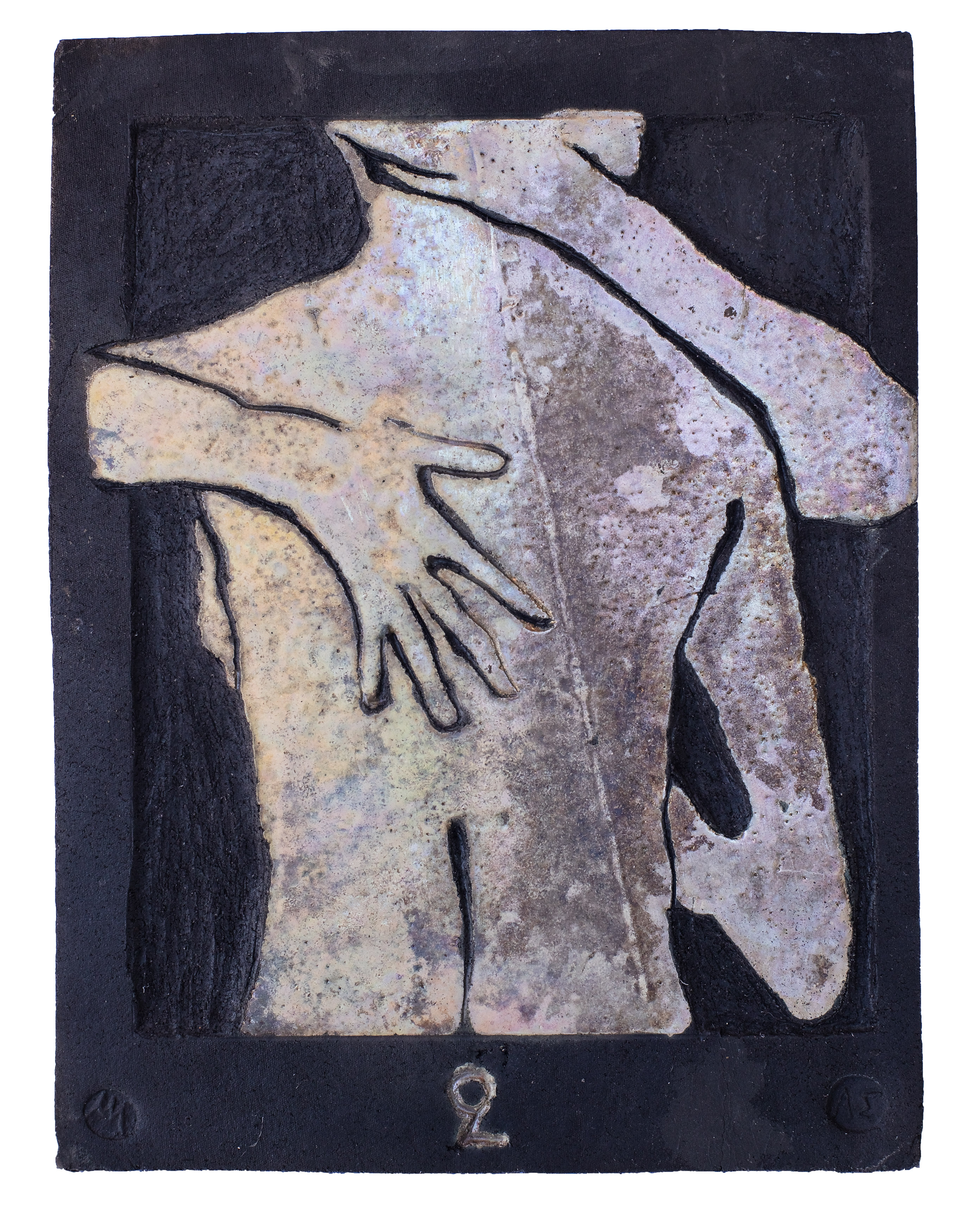Raku ceramic tile Hug #1 31 x 39 x 3 cm, 2 kg |