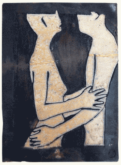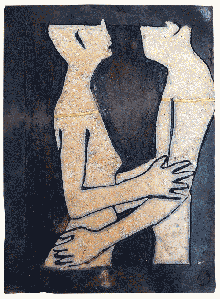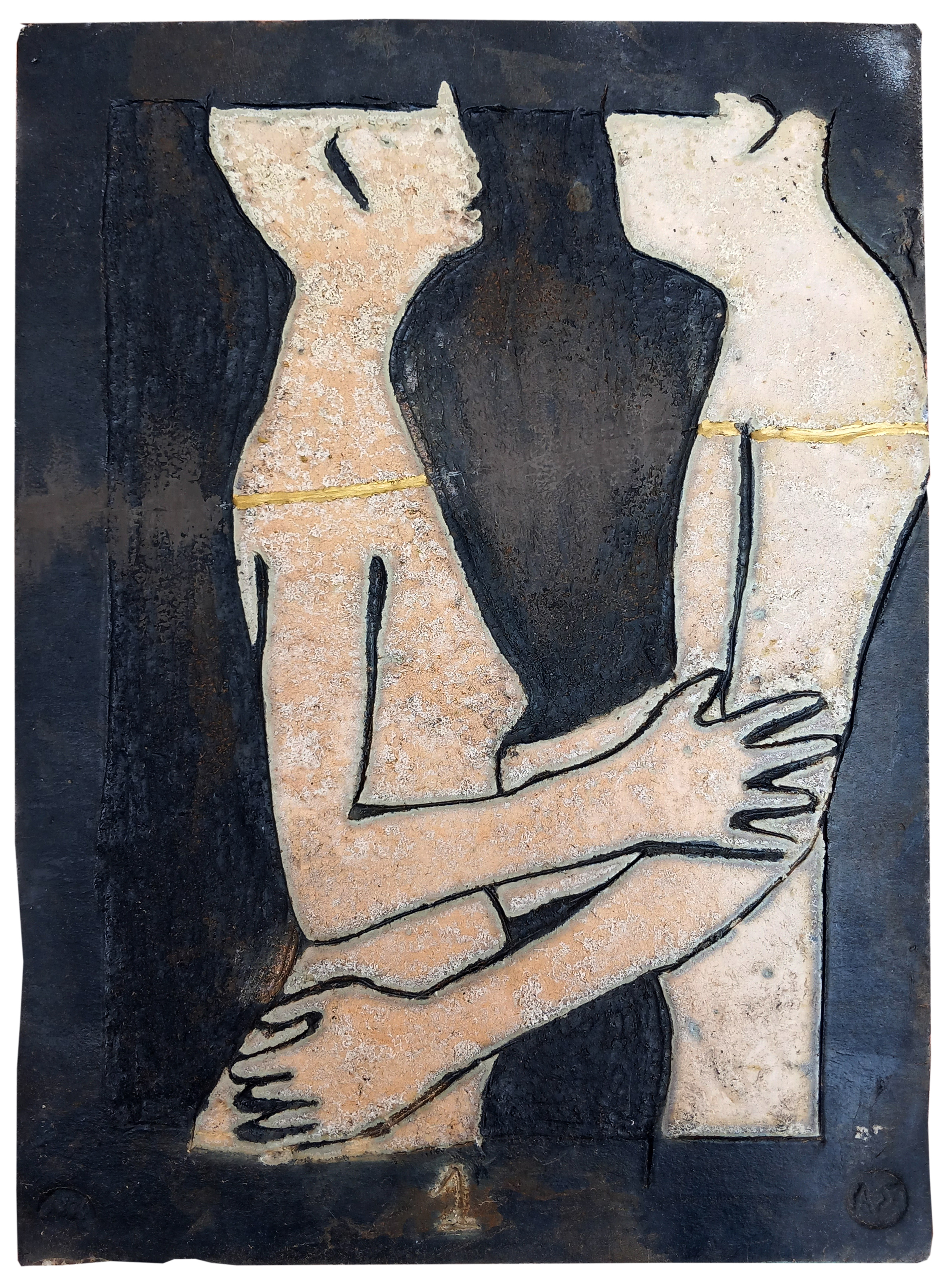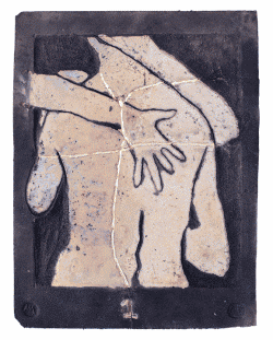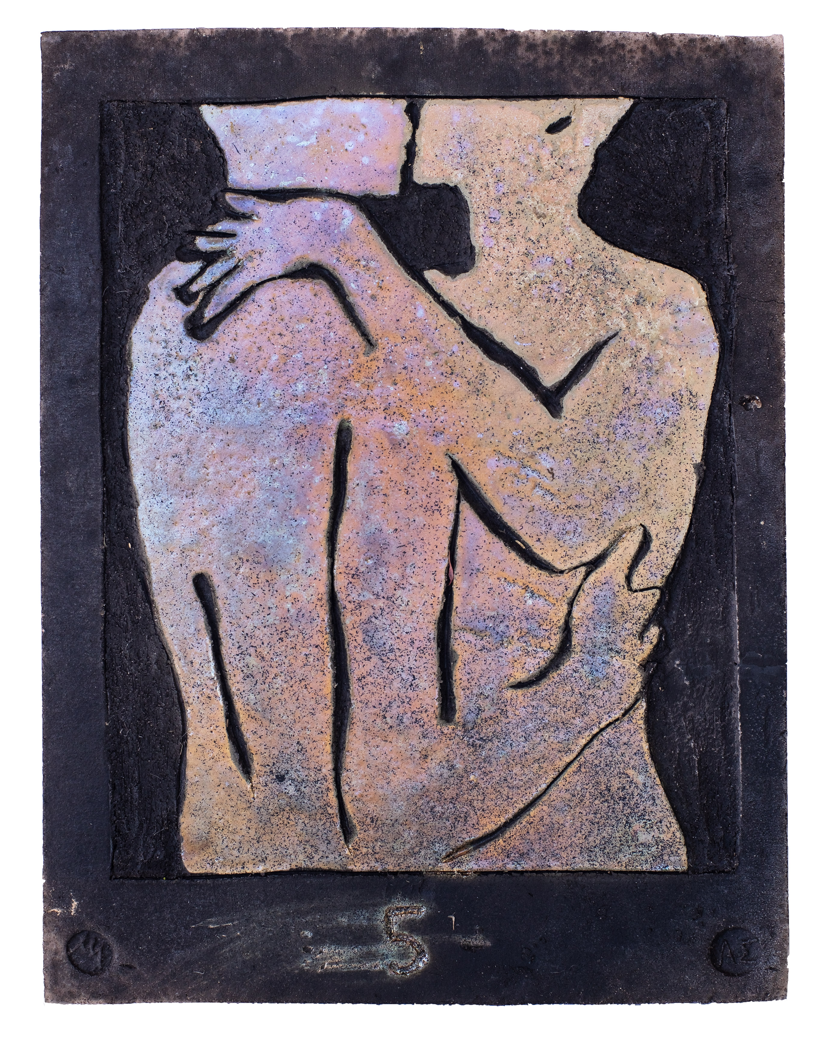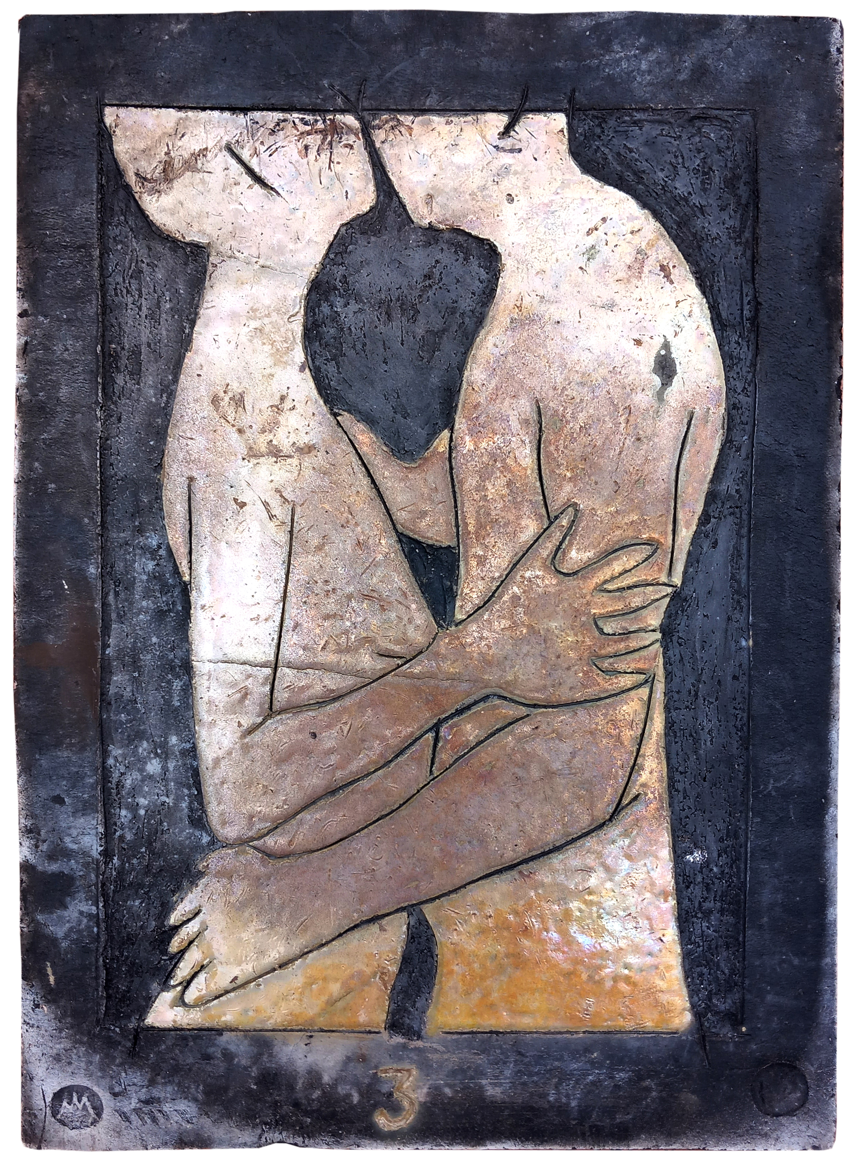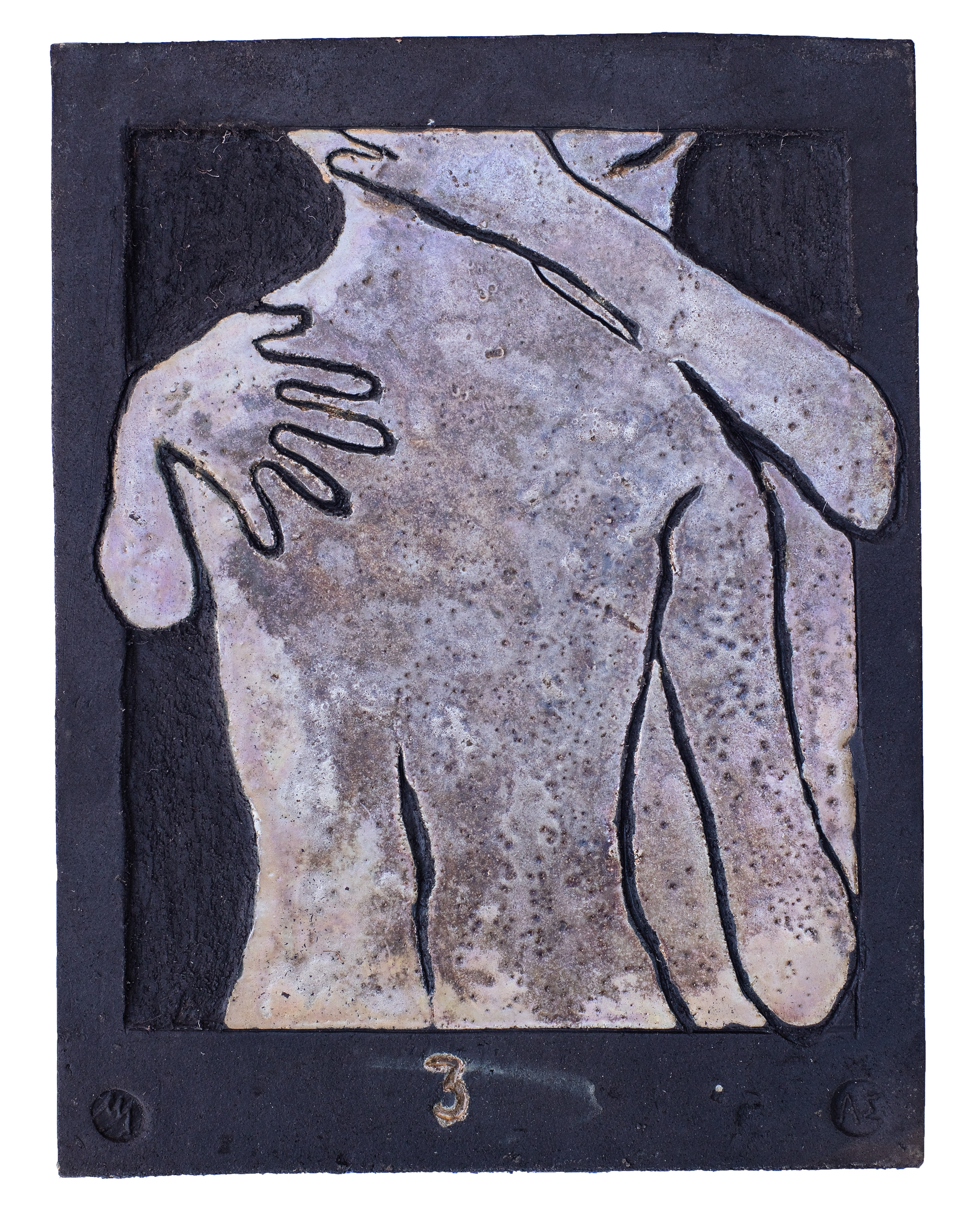 Raku ceramic tile Hug #1 31 x 39 x 3 cm, 2 kg |