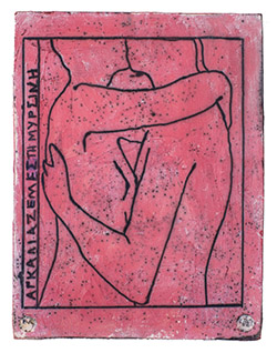 short film Hug me in Myrsini #2 2 second (5 fps), silent loop, Greece, 2023 edited using a basic sequence of 10 Raku fired ceramic tiles, each 28 x 40 x 2 cm, 2 Κg |