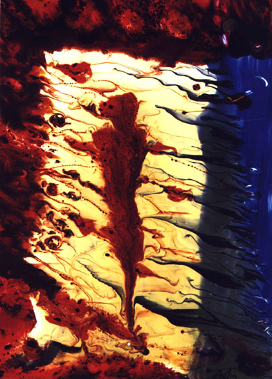 application of various chromatic tones and layers of shadow-light, along with outpourings