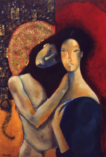 that are recreated, often two women in one painting (alter ego?) and stand as totemic