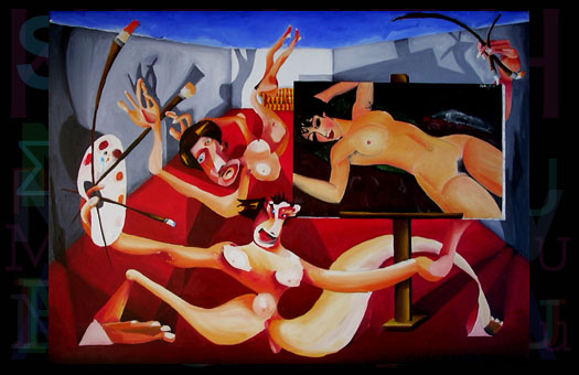 A proficient person in new art trends -products of technology and electronic means of our age- could characterize the artists as almost traditional, since they all use canvases, wood and brushes instead of "installations", digital processes and video art. However, even nowadays, painting continues, as intensely as before and along with the new art identity, to assemble the past, to register traces of life and to instigate a dialogue between the perpetually moving time and the imprinted moment. This way, the creators of ÌïÔeR 1 reflect reality, time, memory, anxiety, respect for the past and their conflict with the conventional through their work. With exactly the same function of a motor -conversion of a form of energy into kinetic energy-, the painters perceive the present by composing dynamic representations, stimulating vision and transforming substance into multiple energy fields. (Note: Mo.Te.R or 'moter' is motor in English). The cultural heritage of the future is the authentic artistic production of our days, as the one presented at the group exhibition of the 9 artists (24 Nov-7 Dec 2001), as well as in the series of single exhibitions that follow. |