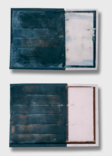 oil on wood, glass