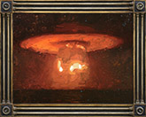 α. Πυρηνική δοκιμή #3 α. 80x60 εκ. λάδι σε καμβά και κορνίζα β. Λεπτομέρεια της κορνίζας α. του έργου "Πυρηνική δοκιμή" |