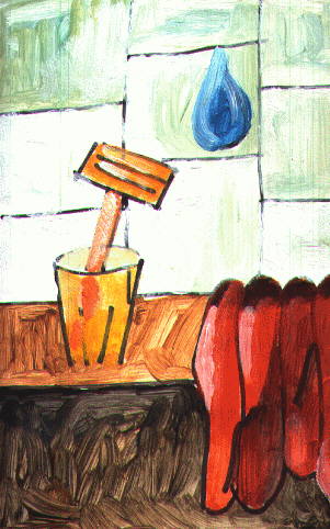 Και μια σταγόνα νερό στο πλακάκι του μπάνιου.