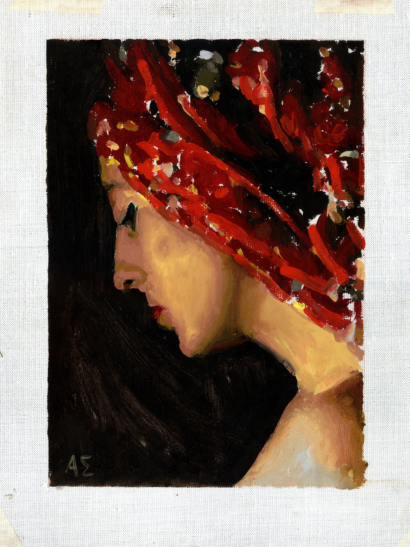 Woman #1 with headscarf (Mandi) | 2012 | 30 x 40 cm | oil on canvas | Private Collection |