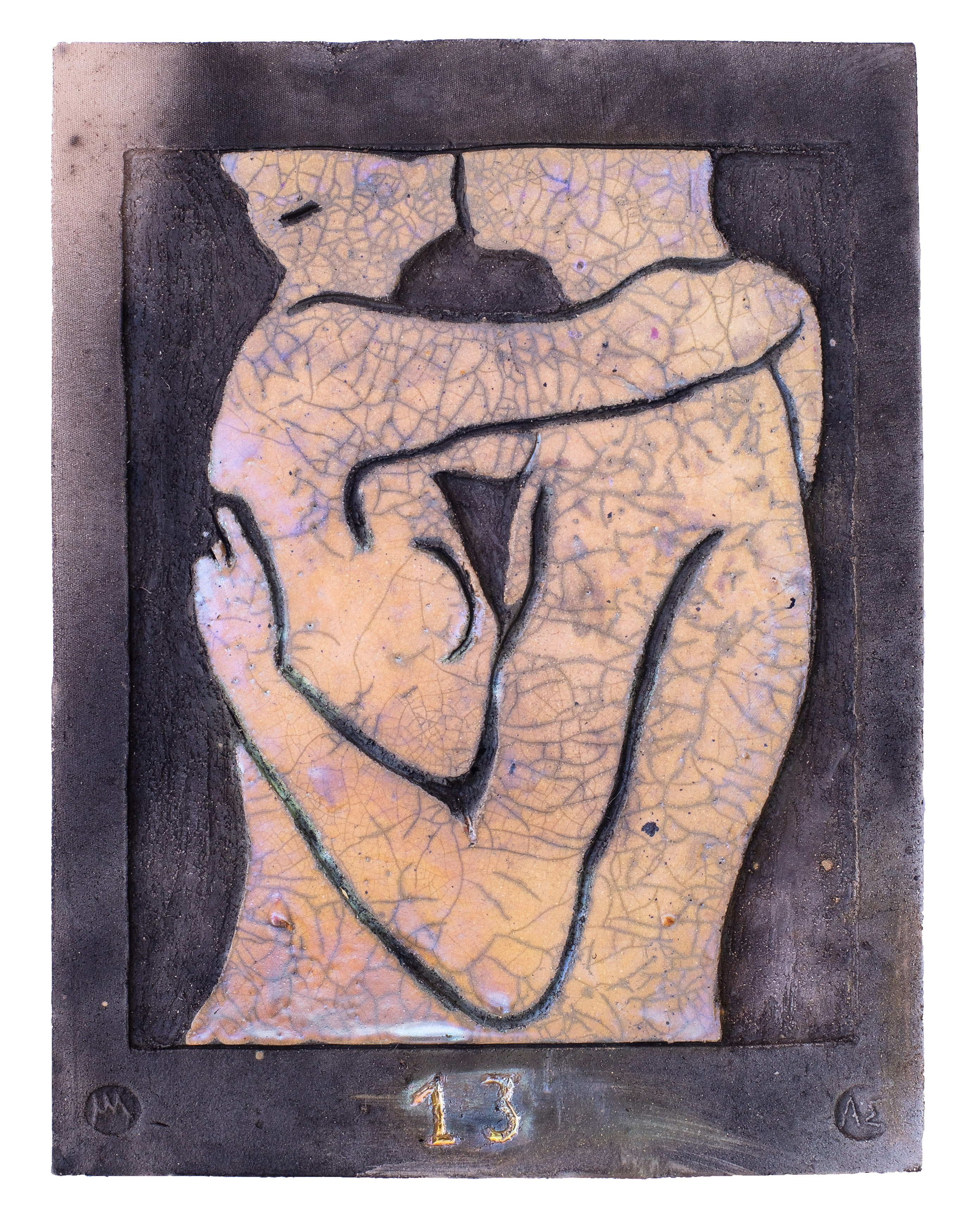 Raku ceramic tile Hug #1 31 x 39 x 3 cm, 2 kg |
