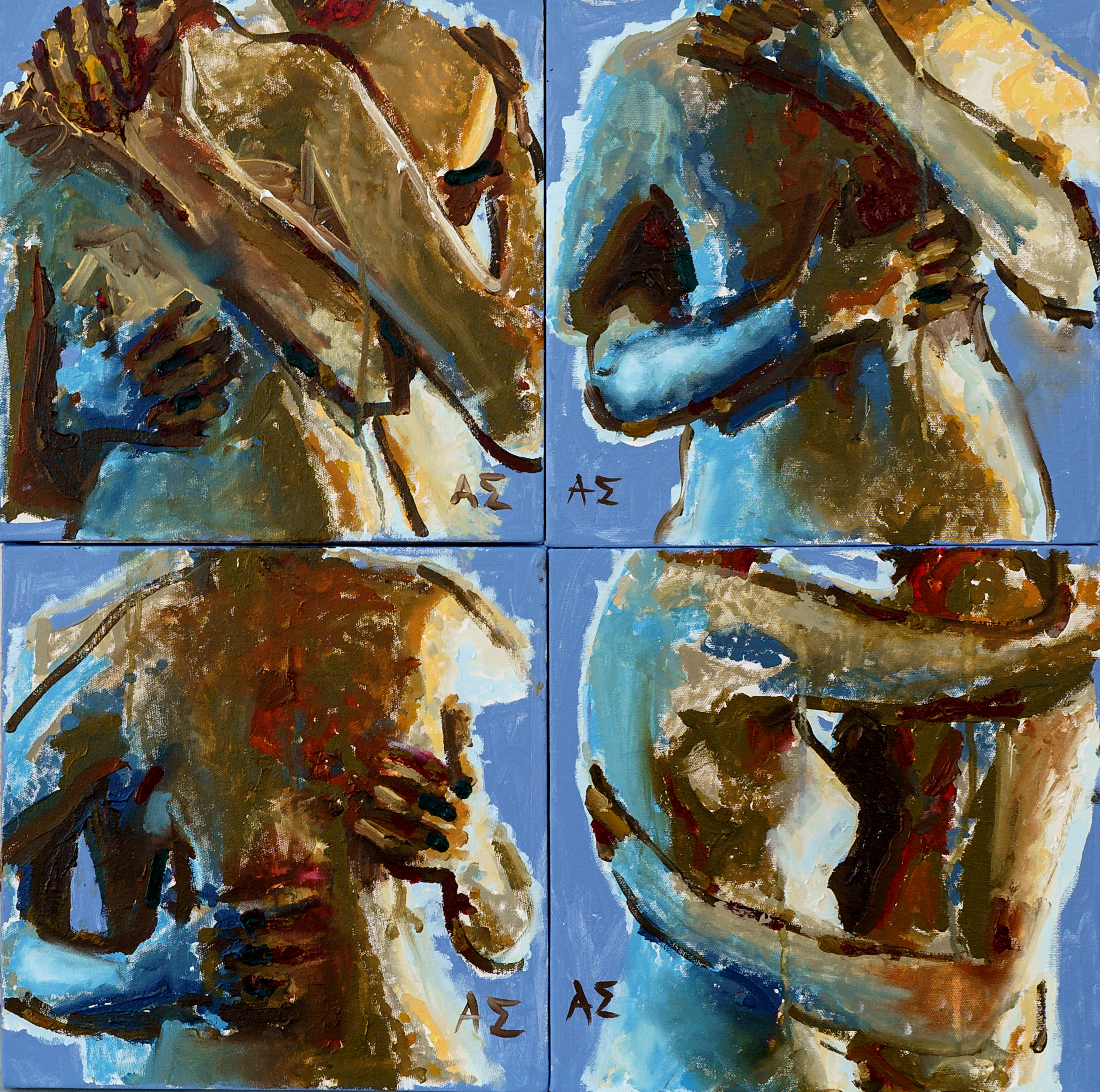 Blue hug | 2020 | 4 x (50 x 50) cm | oil on canvas |