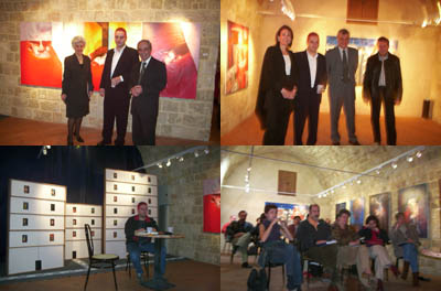 below: "Philosophy of Blue" lecture during the exhibition