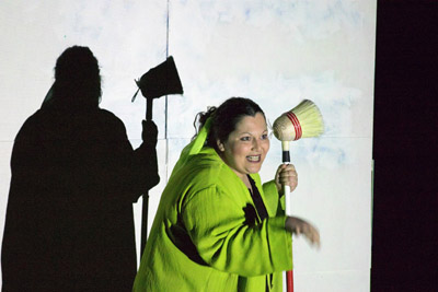 κυρία Ελένη γυρίζει με μια βούρτσα και τους
